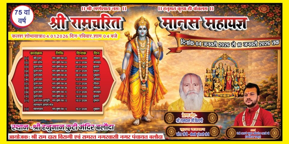 बलौदा का पारम्परिक माघी मेला और श्री रामचरित मानस महायज्ञ कलश यात्रा के साथ होगी प्रारम्भ।