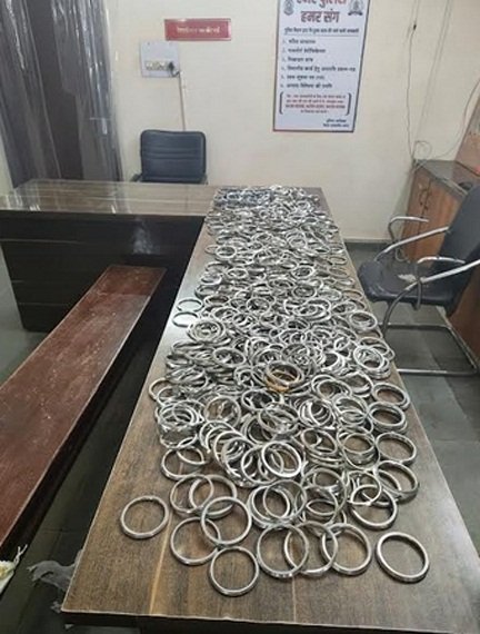 नवरात्रि दशहरा पर्व पर सुरक्षा व्यवस्था चाक-चौबंद रखने जांजगीर पुलिस ने सख्ती दिखाई है। पुलिस अधीक्षक विजय कुमार पाण्डेय (आइपीएस ) के निर्देशन में नैला श्री दुर्गा पंडाल और मेले में आये से युवकों के करीब 1700 स्टील के कड़े उतरवाकर जब्त किए गए। इन कड़ों का उपयोग हमले या विवाद की स्थिति में हथियार की तरह किया जा सकता था।