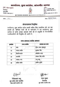 इस नियुक्ति पर क्षेत्र के युवा साथियों एवं कांग्रेसजनों में हर्ष एवं उत्साह का वातावरण है।